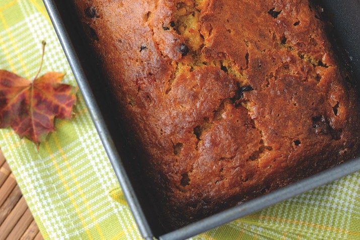 Bake for 45-50 minutes until a toothpick inserted into the center of the loaf comes out clean, being careful not to over-bake. Let cool for 15 minutes before removing from the pan.